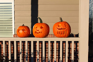 On Saturday the kids carved the pumpkins. unfortunately soon after they were carved Savannah dropped Luke's pumpkin and the ghosts fell out.